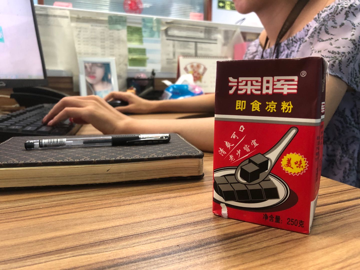 公司在高溫預警發(fā)布的同時,就安排了財務采購了大量的涼茶和即食涼粉,為漫長的夏日做好準備。涼茶到達公司之際,第一時間被放入了冰箱。原本放著零食的冰箱在瞬間被填補的滿滿當當,一杯杯涼茶和即食涼粉在這里等待著每一位員工的認領(lǐng)。
